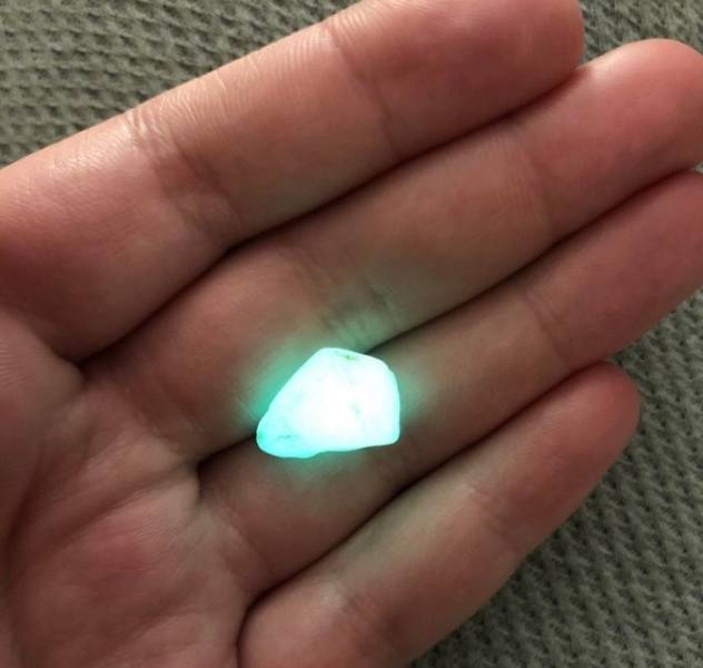 « Trouvé dans le désert israélien, quelqu’un sait de quel type de roche il s’agit ? Il brille lorsqu’il est chargé de tout type de lumière. Des personnes ont dit qu’il s’agit de la calcite verte. Et les géologues ont affirmé que tous les minéraux peuvent réfléchir la lumière, mais certains d’entre eux, y compris la calcite, ont la capacité d’absorber de la lumière, puis de la libérer