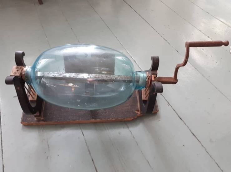 « Cela a été trouvé dans une salle de stockage dans un château voisin du 17ème siècle. Aucune suggestion ? » Cet étrange appareil du passé est très probablement un générateur utilisé pour produire de l’électricité statique. Une personne suggère que cette invention particulière est une machine Holtz qui était populaire dans la seconde moitié du 18ème siècle.