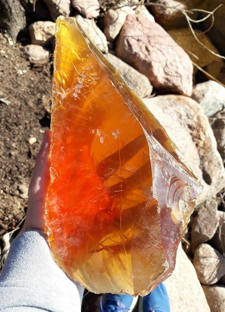 « Mon père a trouvé ceci échoué sur le rivage près de notre maison au bord du lac. Qu’Est-ce que c’est ? » Cela ressemble à un gros morceau d’ambre, mais c’est probablement trop grand et parfait pour en être un. Certaines personnes ont suggéré qu’il pourrait s’agir d’un morceau de colophane, une substance extraite de pins et d’autres arbres utilisés pour produire de l’encre, de la colle, du savon, etc.