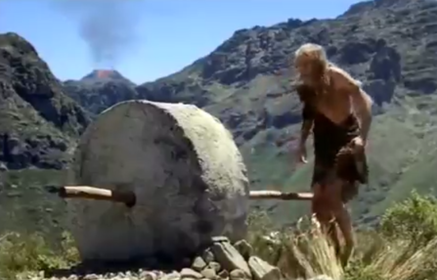 Il leur a fallu en effet, transporter une très grosse pierre ronde qui servira de scène dans la montagne. Il a ensuite fallu la tailler, le trouer pour faire entrer le bois servant de barre.