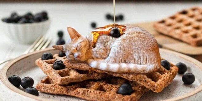 Grâce à des logiciels comme Photoshop, on peut matérialiser en photos les fruits de notre imagination. Comme ses chats dans les assiettes. Improbables mais bien exécutées Ksenia, une artiste Russe aime les chats et la nourriture.