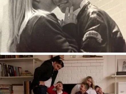 Nous au lycée et nous maintenant. Nous sommes mariés depuis 15 ans et avons trois garçons.