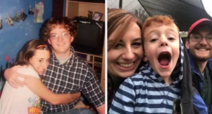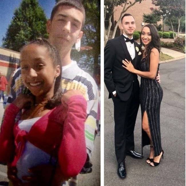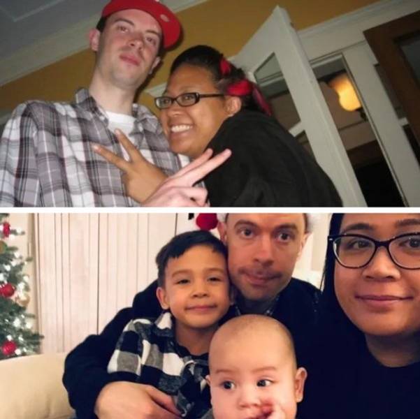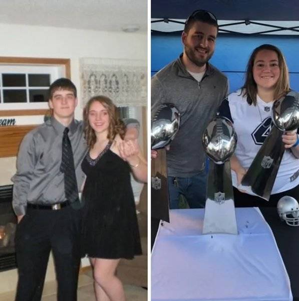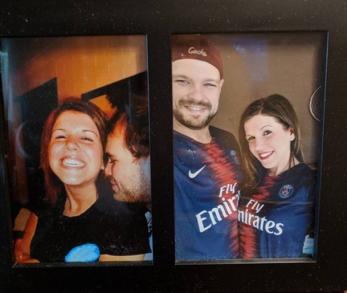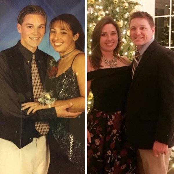 La première photo provient de notre bal de promo senior en 2005. La dernière photo date de décembre 2018. Nous sommes mariés depuis 10 ans et avons 2 beaux enfants.