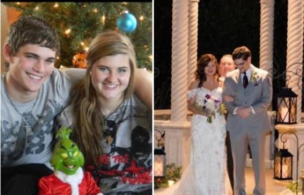 Nous nous sommes rencontrés à l’âge de 15 ans au lycée près des casiers. Nous avons commencé à sortir à 16 ans. Nous nous sommes fiancés à 22 ans. Nous nous sommes mariés à 24 ans. Nous attendons notre premier bébé à 27 ans.