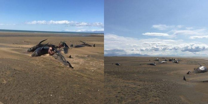Des images troublantes ont émergé montrant des dizaines de baleines mortes gisant sur une plage de l’ouest de l’Islande.