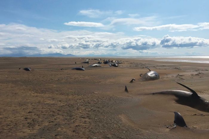 On ne comprend pas actuellement pourquoi exactement les baleines sont mortes, mais on pense qu’elles ont nagé jusqu’à la côte en même temps et se sont déshydratées. Bien que les échouages de baleines ne soient pas rares à cette époque de l’année, le nombre de baleines est inhabituel.