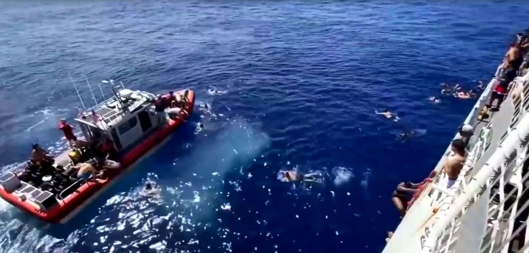 En se baignant en haute-mer, des garde-côtes américains ont été menacé par un requin. Un membre de l’équipe a alors ouvert le feu en tirant sur l’animal.
