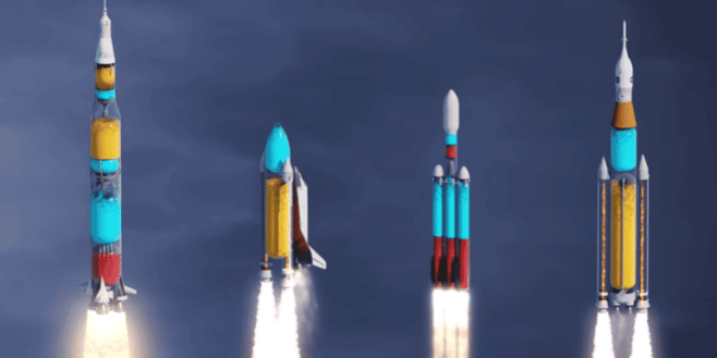 Les navettes spatiales disposent d’un système de lancement basé sur des propulseurs fonctionnant avec 3 carburants. Cette vidéo met en scène des fusées transparentes qui montrent la manière dont ses liquides sont consumés pour permettre à ces engins d’être propulsés dans l’espace, sans que le feu ne se propage. Découvrez comment le kérosène, le dihydrogène et le dioxygène sont utilisés pour maintenir une poussée constante sur les fusées Saturn V, Space Shuttle, Falcon Heavy et la SLS.