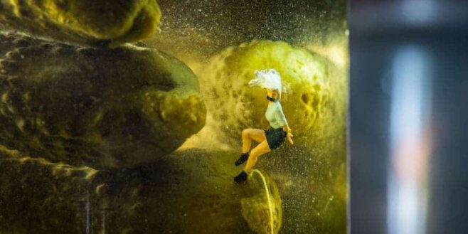 Le projet “Tiny Wasteland” a pris 3 ans pour être créé. Il consiste à mettre des figurines miniatures à côté d’objets du quotidien pour créer l’illusion d’un monde microscopique où grouillent de multiples personnages.