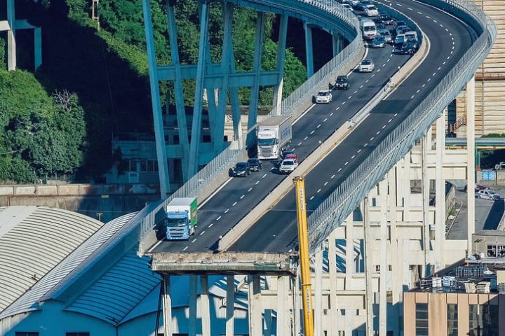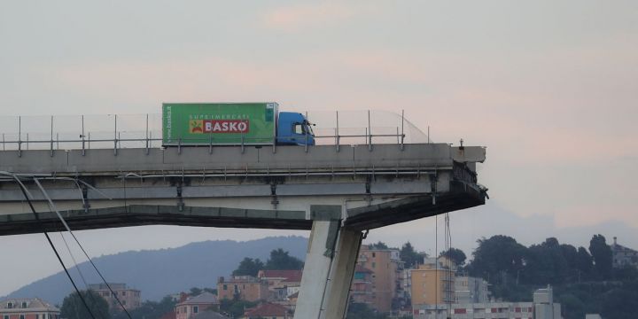 Ce camion qui a pilé juste avant la destruction du pont de Gênes. Le conducteur est reparti en courant pour fuir la catastrophe.