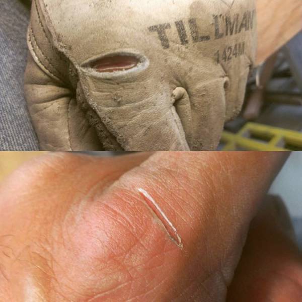 Quand les gants de sécurité font leur travail. Ils ne sont pas juste des accessoires de travail.