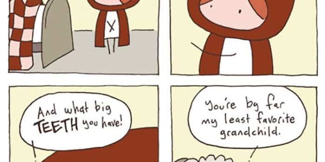 Le petit chaperon rouge : Oh Mamie que tu as de grands yeux. Et bonté divine ! Comme vous avez de grandes oreilles. Et comme vous avez de grandes dents.