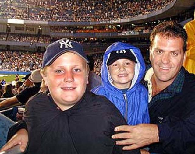 Un portrait de la famille Kelly lors d’un match des Yankees de New-York le 10 septembre 2001. Le lendemain des attaques contre le World Trade Center, le père Joe Kelly a été tué.
