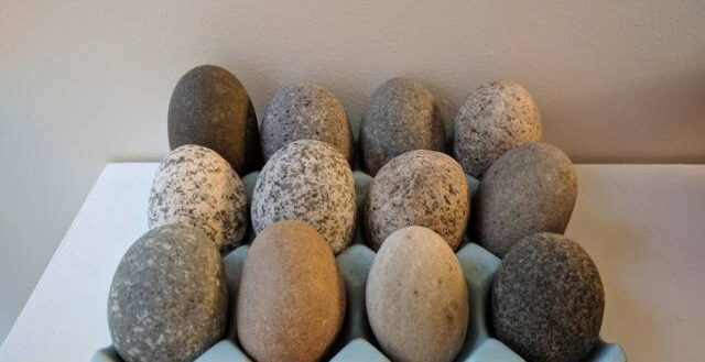 Ces œufs sont un peu bizarres. Normal, ce ne sont pas des œufs, mais des pierres qui ont la forme d’un œuf.