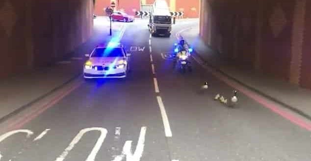 Un policier du Hampshire, en Grande-Bretagne, a partagé la vidéo d’une famille d’oies escortée en toute sécurité sur une route principale.