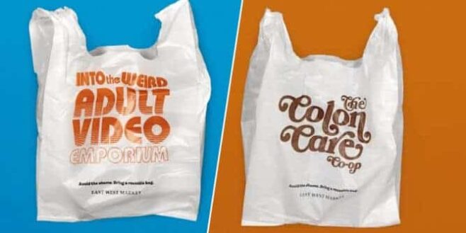 Ceux qui veulent acheter un sac en plastique à usage unique à l’épicerie indépendante East West Market devront supporter des slogans assez embarrassants, ce qui leur permettra de rentrer chez eux à la figure.