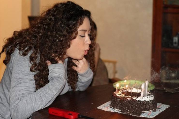Un gâteau d’anniversaire après que les bougies soient soufflées.