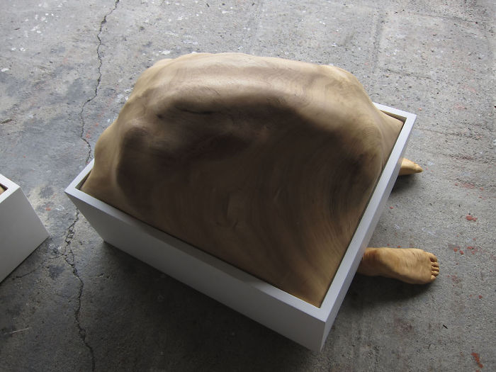 Les sculptures en bois d’un artiste taïwanais intriguent. Elles semblent montrer une personne pris au piège.