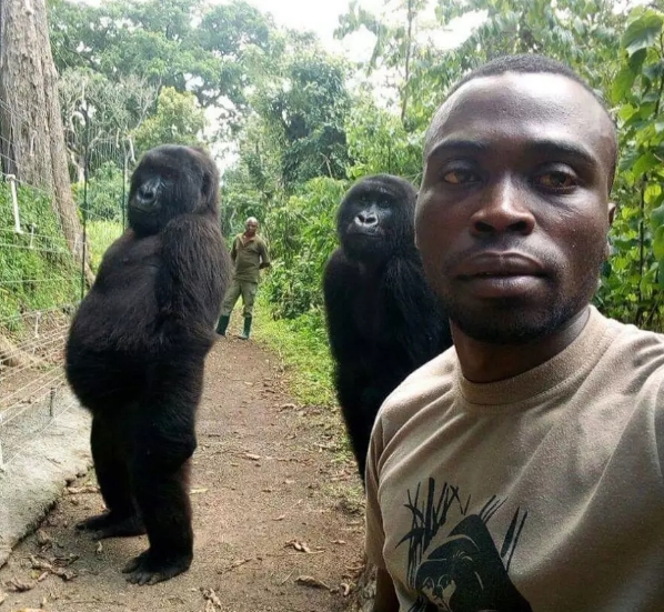 Dans un parc national au Congo, des rangers veillent sur les gorilles. Ils ont ainsi pu tisser des liens avec ces mammifères qui se sont laissé prendre en photos selfies avec l’un de leurs gardiens rangers.