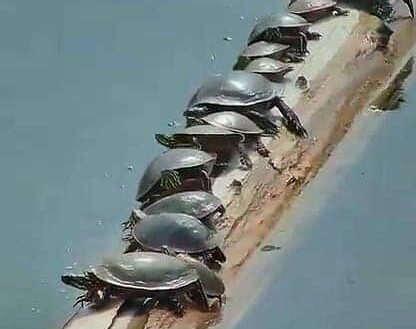 Interville chez les tortues, c’est aussi un grand moment. Du suspense ave ces tortues qui essayent de rester en équilibre sur cette branche. Qui tombera en premier ?