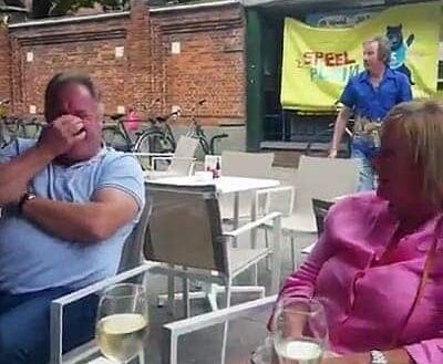 Deux ivrognes de la ville Belge d’Alost se battent devant la terrasse d’un café.