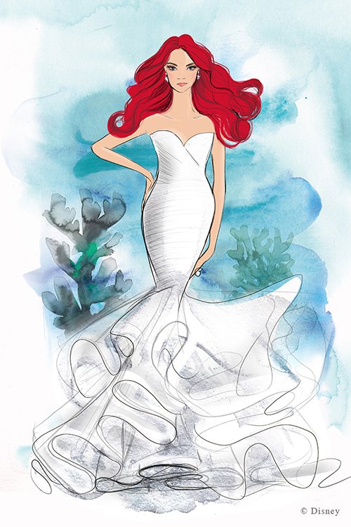 La présentation de la collection aura lieu en avril 2020, lors du New York Bridal Fashion Week. Mais quelques croquis ont été dévoilés, notamment pour Belle, Tiana et Ariel.