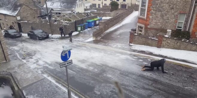 Impossible à grimper, cette route verglacée fait sourire les voisins quand ils filment les passants tentant de la monter.