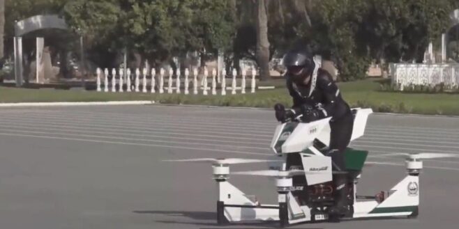 Un hoverbike est une sorte de moto volante. À Dubaï, cet appareil intéresse notamment la police. Un essai d’un hoverbike a failli couter la vie d’un conducteur. L’appareil a plutôt bien amorcé son décollage mais à un moment donné, il perd son élan et redescend pour revenir au sol.