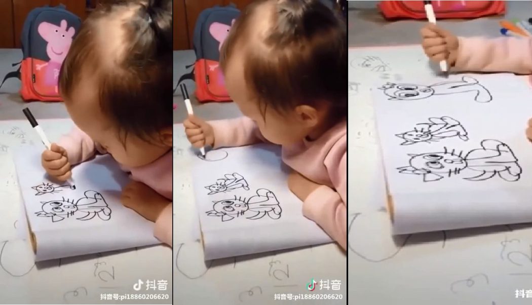 Comme le montre cette vidéo, filmée par un de ses parents, elle dessinait une image caricaturée d’un chat et c’est magnifique ce qu’elle fait!