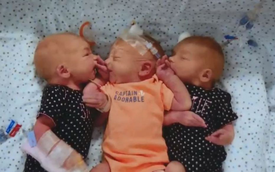 Les triplés, deux filles et un garçon nommés respectivement Gypsy, Nikki et Blaze, sont nés chacun à quatre minutes d’intervalle, et pèsent 1,80 kg.