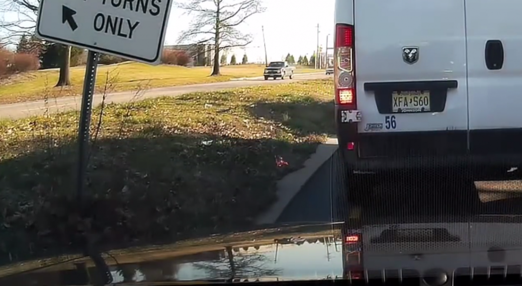 Dans un embouteillage, le chauffeur d’une camionnette blanche jetait les cendres de sa cigarette, mettant ainsi le feu à l’herbe sur le trottoir. Lorsqu’il est réparti, il ne s’était même pas rendu compte qu’il a failli déclencher un incendie.