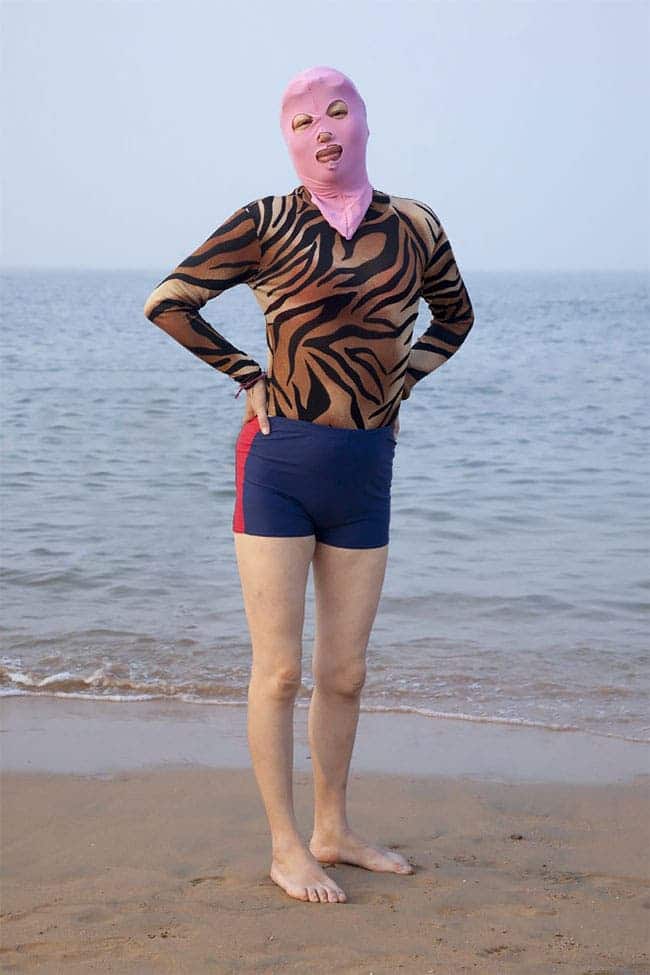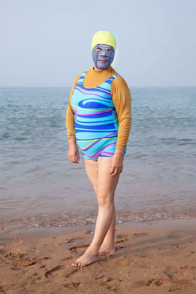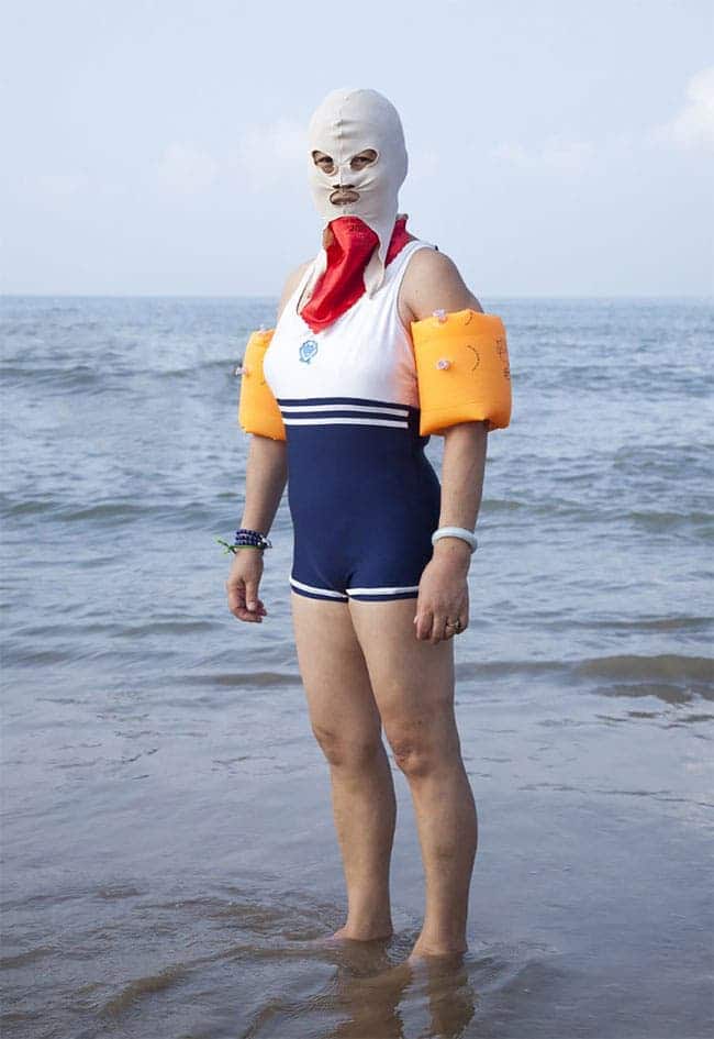 Avec sa série Swimmers, le photographe montre que sur les plages en Chine, il s’agit surtout de dissimuler la peau. Des tenues de plage colorées que les femmes chinoises portent pour la protection contre le soleil et les méduses géantes.