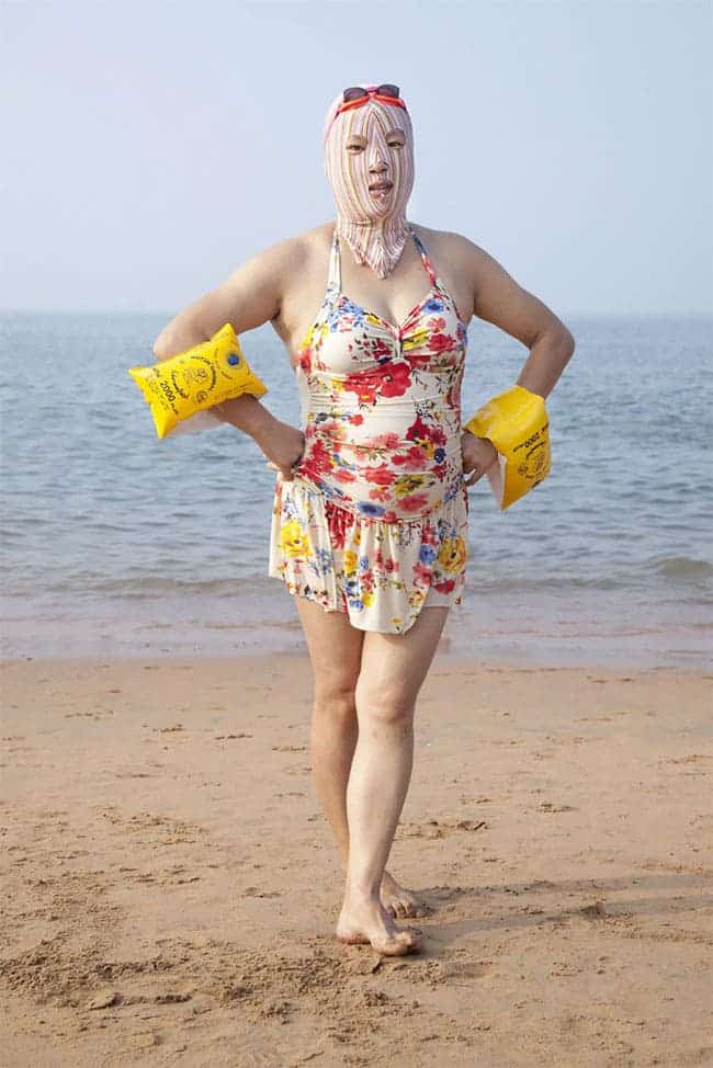 Sur les plages de Miami ou de Rio, il s’agit de montrer la peau en Chine c’est une mode complètement différente. La plupart des femmes utilisent en effet des maillots très couvrants accompagnés de facekinis afin de cacher au maximum leur corps.