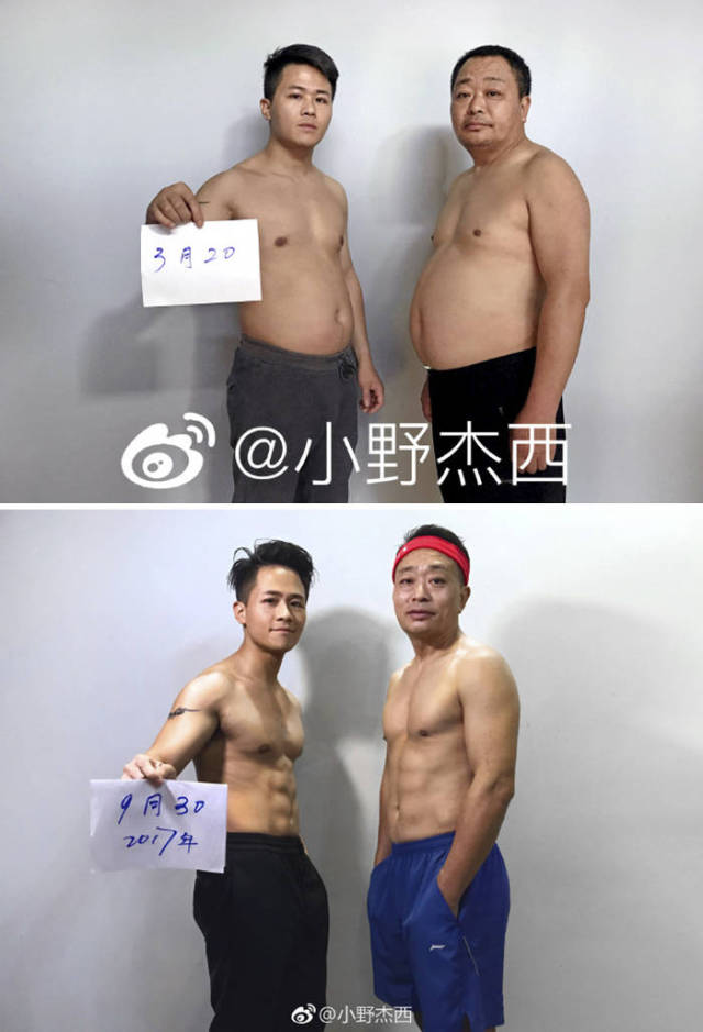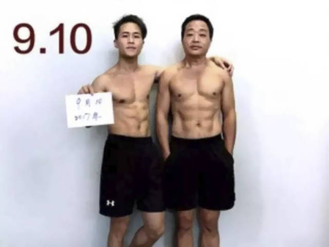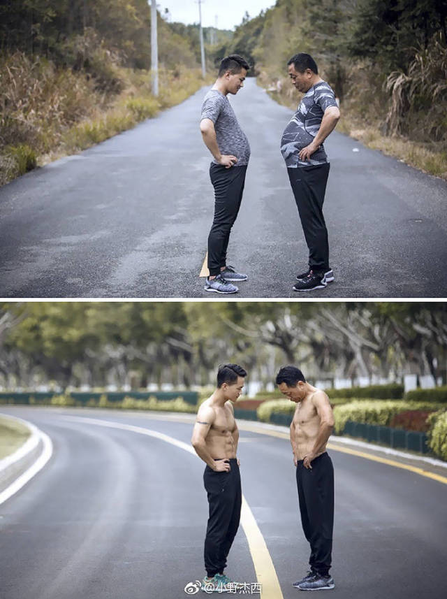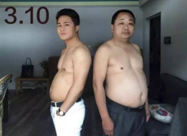 Avant l’entrainement, aussi bien le père que le fils avait de gros ventres. Mais comme par miracle, ils ont disparu.