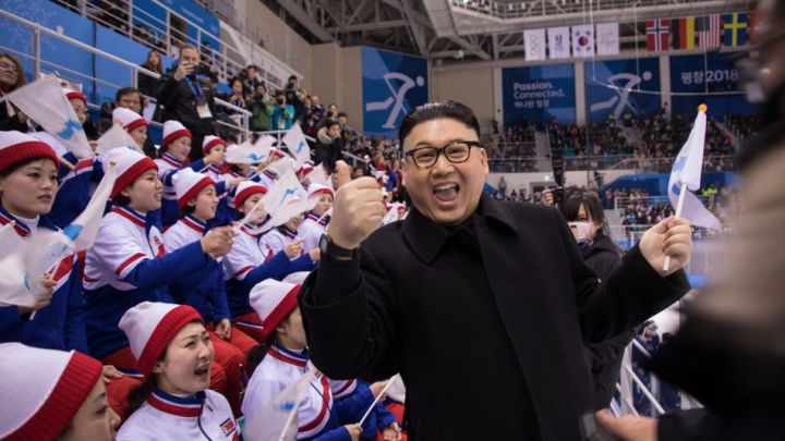Un imitateur de Kim Jong-Un est venu saluer les pom-pom girls nord-coréennes aux Jeux Olympiques d’hiver. Elles ne remarque même pas sa présence mais il fait son effet ailleurs, il a su attirer les attentions !