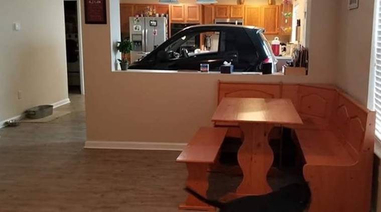 La femme d’Eldridge, Jessica, a posté des photos de l’espace de stationnement inhabituel sur Facebook. Elle a écrit qu’elle craignait que la voiture ne passe pas par la double porte de la cuisine, mais Eldridge a réussi à obtenir le travail de stationnement inhabituel.