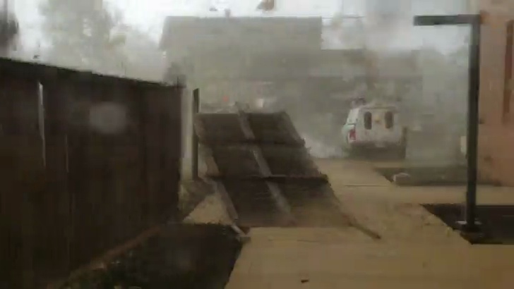 Cet homme vraiment fou filme une tornade qui passe au-dessus de lui, voire à quelques mètres à côté. Celle-ci provoque la destruction de tout ce qui se trouve autour de lui.