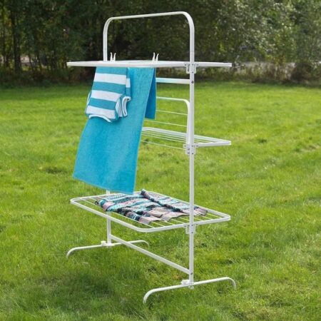 D’autre part, ce séchoir est pliable. Il peut aussi s’utiliser à l’intérieur et à l’extérieur de la maison. Le produit comprend aussi deux points d’appui stables et est disponible en blanc. Et coûte 59,99 euros.