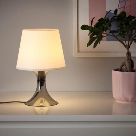 On commence par cette lampe BARLAST à 3,99 €. Ce modèle est un des plus accessibles du catalogue. Élégante et se tenant solidement sur son pied en métal, elle possède un abat-jour qui offre une lumière douce et non éblouissante. C’est une lampe qui trouvera idéalement sa place sur votre table de nuit.