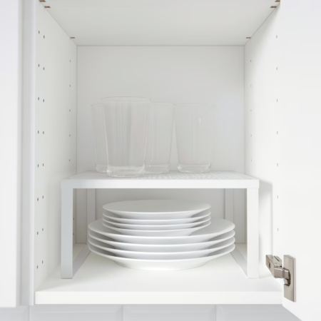 C’est le cas avec cette demi-étagère VARIERA qui ne nécessite aucun travail de bricolage pour pouvoir servir. Pour doubler l’espace de vos placards, il suffit de la poser dedans.