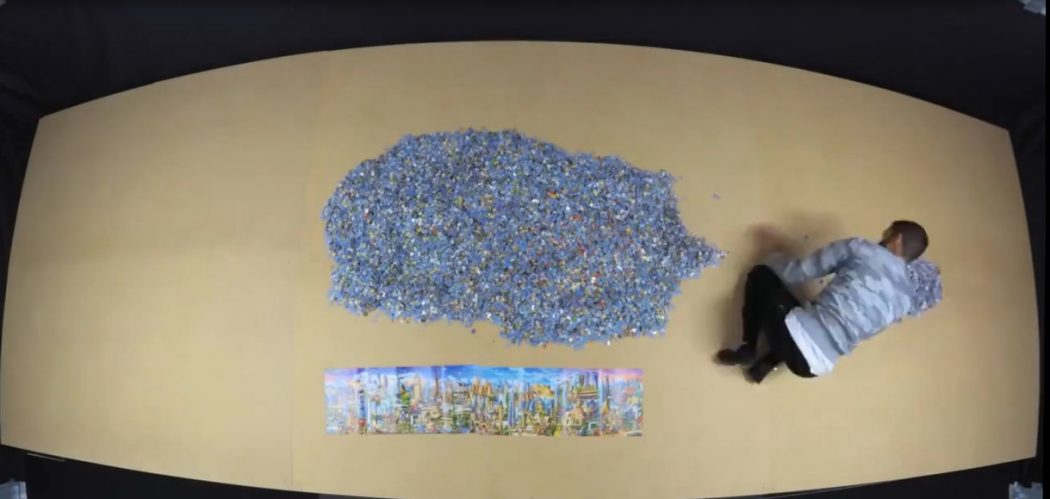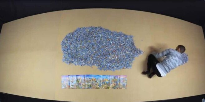 Ce jeu de puzzle de 42000 pièces est tellement grand qu’il a fallu presque une année à l’homme de la vidéo pour le terminer.