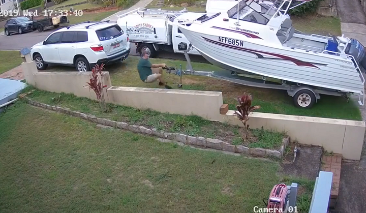 En voulant accrocher un porte-bateau à l’arrière de sa voiture, cet homme se retrouve à faire une glissade devant sa maison. A cause du poids de la remorque et de la route en pente, le porte-bateau a glissé mais n’a, heureusement, causé aucun dégât.