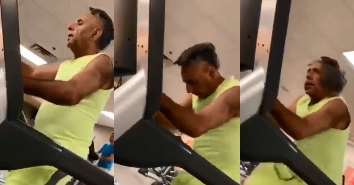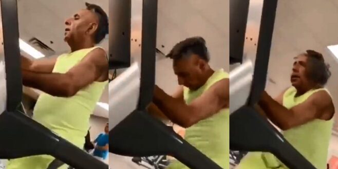 Un homme a été filmé en vidéo dans une salle de gym en train de courir sur un tapis roulant.