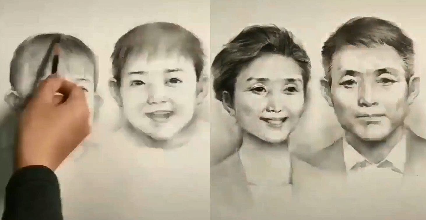 Un peintre talentueux s’est filmé en vidéo en dessinant deux personnes, une femme et un homme, en suivant les étapes de leur croissance.
