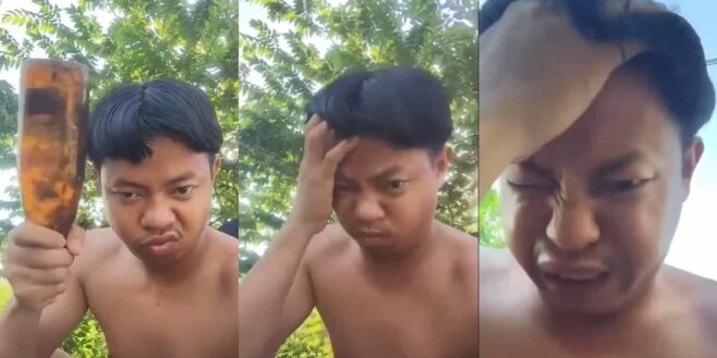 Cet homme a décidé de se filmer en essayant de briser une bouteille en verre avec sa tête.