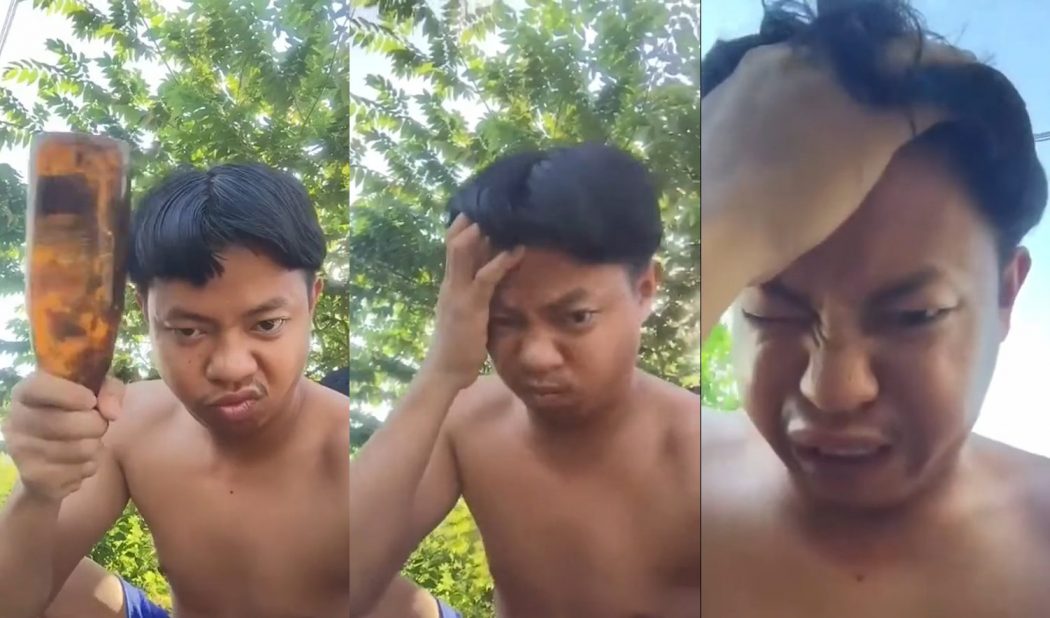 Cet homme a décidé de se filmer en essayant de briser une bouteille en verre avec sa tête.