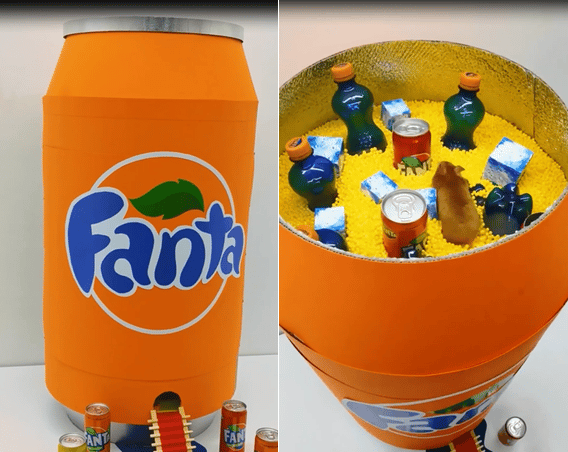À première vue, le labyrinthe a l’air d’une canette de Fanta, d’une hauteur de 1m, construit avec un carton. A l’intérieur se trouvent différents niveaux à parcourir.