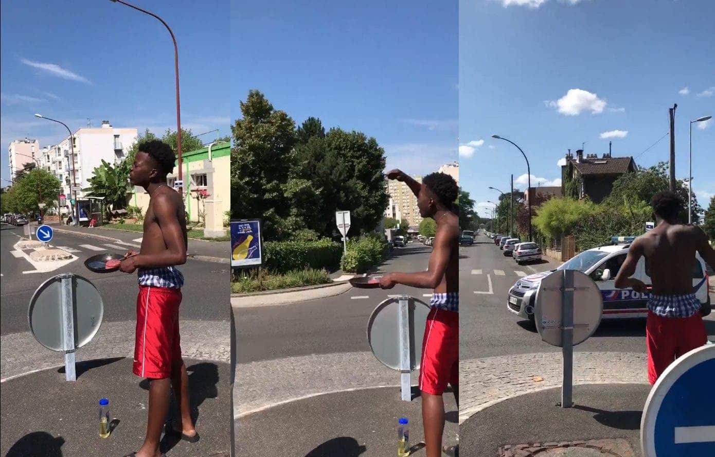 Ce jeune homme hilarant fait semblant de cuire de la viande avec la chaleur du soleil en plein public et invite les passants, incluant la police, à manger.