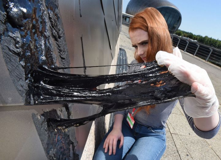 En effet, la membrane de protection étanche du toit du Glasgow Science Centre a commencé à fondre. Dans ce qui s’apparente à une vision de film d’horreur, on a pu voir une sorte de liquide noir visqueux dégouliner le long du bâtiment.