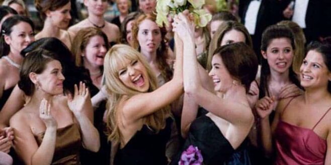 La tradition dit que celle qui réussit à attraper le bouquet de la mariée sera la prochaine à se faire passer la bague au doigt.